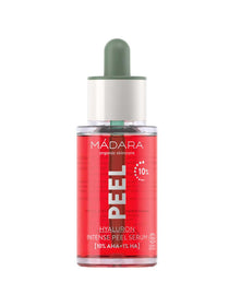 - Madara Peel Hyaluron Intense Peel Serum: This weekly intense peel treatment contains 10% AHA, 1% Hyaluronic Acid plus Lactic Acid to keep skin hydrated and moisture to the skin while removing dead skin cells, congestion and roughness while tackling pigmentation.