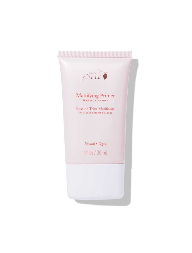 The 100% Pure Seaweed Collagen Primer is a clean, silicone-free formulation infused with skin-plumping seaweed collagen designed for flawless, long-lasting makeup application. This skin-healthy primer features Seaweed Collagen that helps smooth and plump skin whilst Aloe Juice helps soothe and moisturise for optimal makeup preparation. Enhanced with Tea Tree, Eucalyptus and Green Tea for their mattifying benefits. The natural formula helps soften and smooth skin before makeup application whilst helping to minimise shine and fill the appearance of fine lines. Perfect for both face and eyes, this primer is excellent for oily, combination and acne-prone skin types, creating the ideal base for long-lasting cosmetic wear. Made in the USA and vegan.