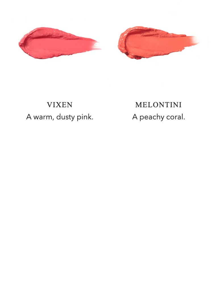 The 100% Pure Lip Glaze is a hydrating hybrid formulation that exists in the glorious realm between lip balm and lipstick, providing a moisturising wash of semi-gloss coverage to lips. This nourishing formula features Avocado and Cocoa Butters that help soften and condition delicate lips whilst delivering medium to full coverage with a satin finish. Enhanced with Rose Petals and Lavender Oil that help gently soothe dry lips whilst providing vitamins and antioxidant benefits. The silky formula helps nourish and soften lips for comfortable, long-lasting wear. Available in ten shades: Fig (deep mauve pink), Rosehip (deep berry brown), Coquette (dusty rose nude), Sultry (warm peach brown), Elderberry (deep pink mauve), Strawberry (soft berry pink), Rhubarb (deep berry pink), Coraline (coral red), Vixen (warm dusty pink), and Melontini (peachy coral). Made in the USA and vegan.