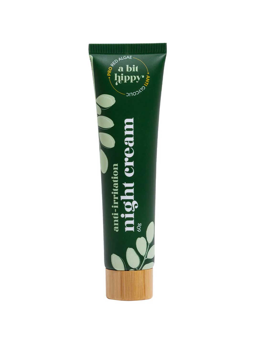 The A Bit Hippy Night Cream is an anti-ageing natural moisturiser designed for overnight skin restoration. Simply massage this cream into your skin before bed to wake up with hydrated, plump, and velvety soft skin. It's formulated with key ingredients such as Lactic Acid, Hyaluronic Acid, and Red Algae to provide overnight nourishment. Suitable for sensitive skin. Made in Australia and vegan.