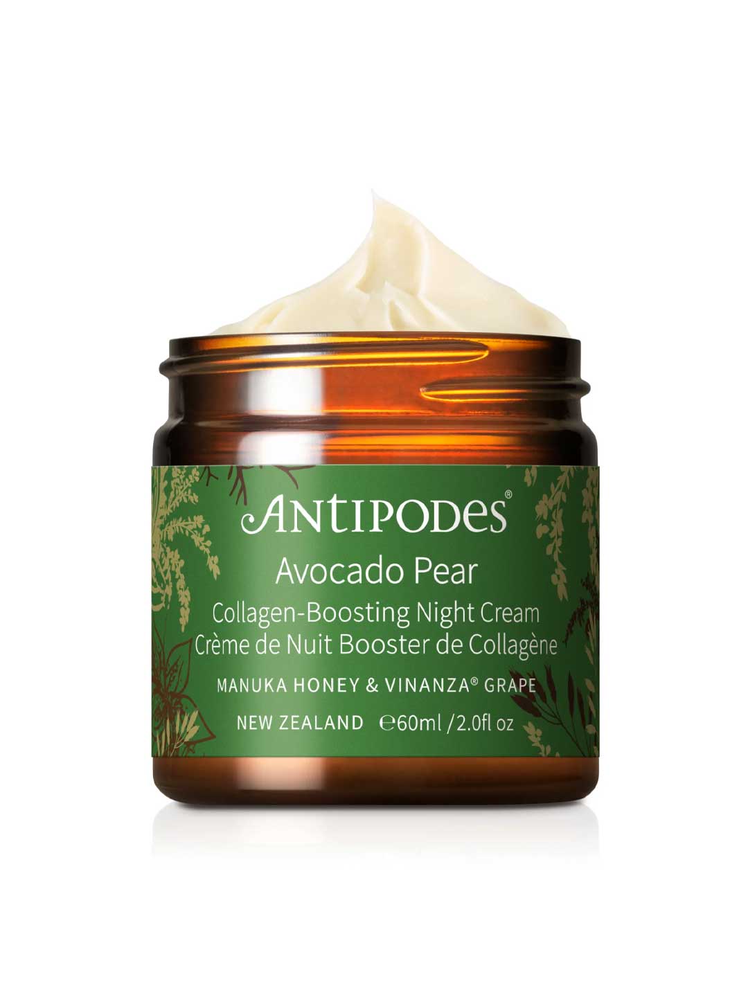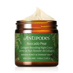 The Antipodes Avocado Pear Collagen-Boosting Night Cream is an anti-aging night cream and luxurious overnight moisturiser designed to help nourish and rejuvenate skin while you sleep. This moisture restoring night cream combines nourishing Avocado Oil with New Zealand Manuka Honey, conditioning Macadamia Oil and Vinanza Grape, an antioxidant-rich extract from Marlborough grape seeds, to help support skin vitality and collagen production overnight. The rich formula works through the night to help reduce the appearance of wrinkles and skin dryness while delivering deep nourishment. This hydrating night cream is enhanced with a gentle, uplifting aroma from pure essential oils of Sandalwood, Ylang Ylang and Patchouli. Suitable for all skin types. Made in New Zealand and packaged in glass.