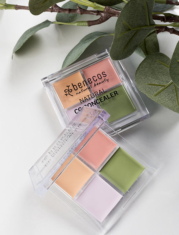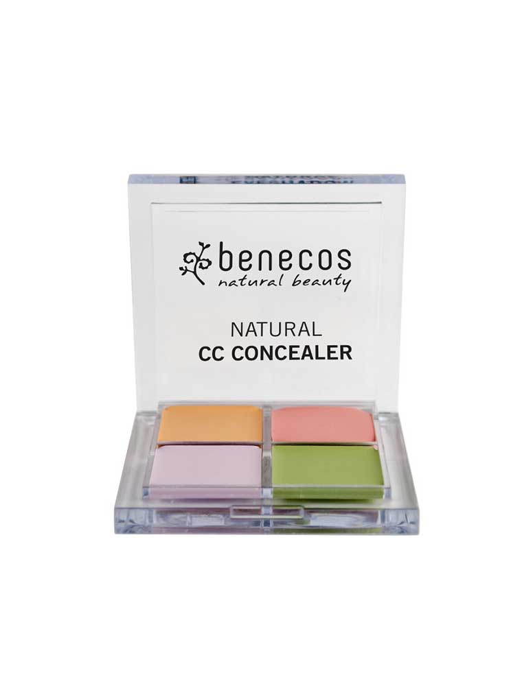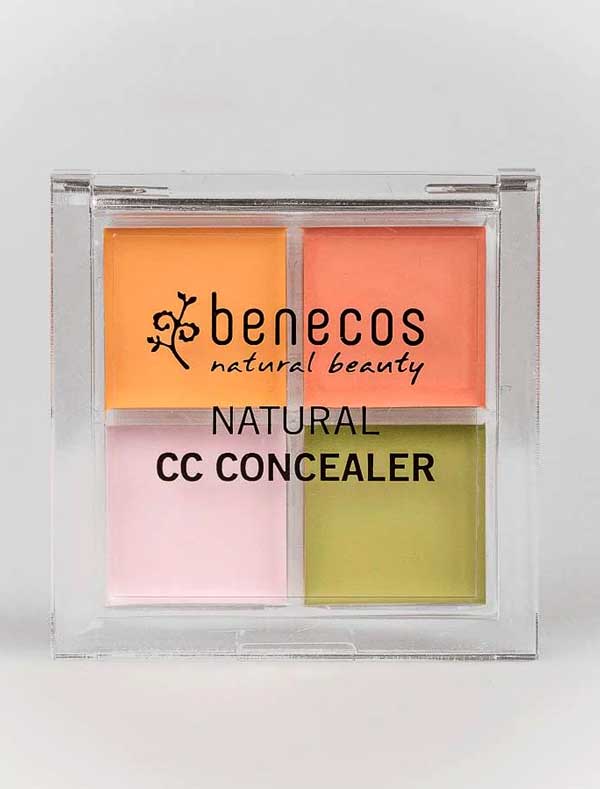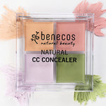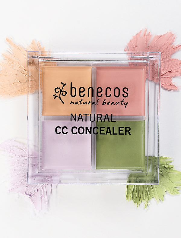 The Benecos CC Concealer is a certified natural, colour-correcting concealer palette with 4 blendable shades designed to create the perfect base for your foundation. Each colour has a specific colour-correcting role: Beige to hide shadows and dark circles, Pink to conceal dark circles, Purple to freshen and brighten, and Green to neutralise redness and blemishes. Formulated with nourishing Apricot Kernel and Castor Oil, it has a smooth texture for seamless blending, concealing imperfections for a flawless, even complexion. Made in Germany, certified natural and vegan.