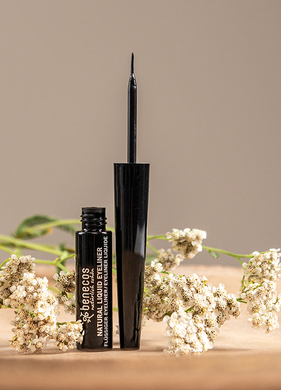 The Benecos Liquid Eyeliner in Deep Black features a fine tip for precise application. Ideal for creating cat-eye looks or enhancing the lash appearance, this certified natural eyeliner is formulated with Organic Beeswax, Jojoba Oil, Sunflower Oil and Vitamin E to nourish the delicate area around the eyelashes. Made in Germany, certified natural.