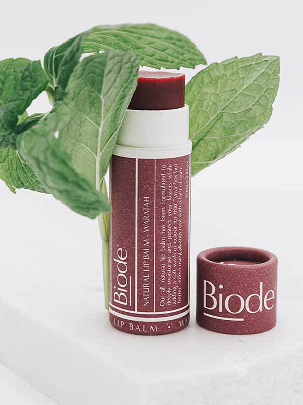 The Biode Tinted Lip Balm in Waratah is an all-natural balm formulated to deeply moisturise and protect your lips while adding the perfect wash of colour. Created by Vanessa Gray Lyndon, it uses Alkanet Root and Red Clay to create a beautiful berry pout, with a hint of mint to uplift the spirit. This versatile tint doubles as a cheek and eye stain for triple the benefits. The zero-waste tube is home-compostable and will 'Return to Earth'. Made in Australia and vegan.