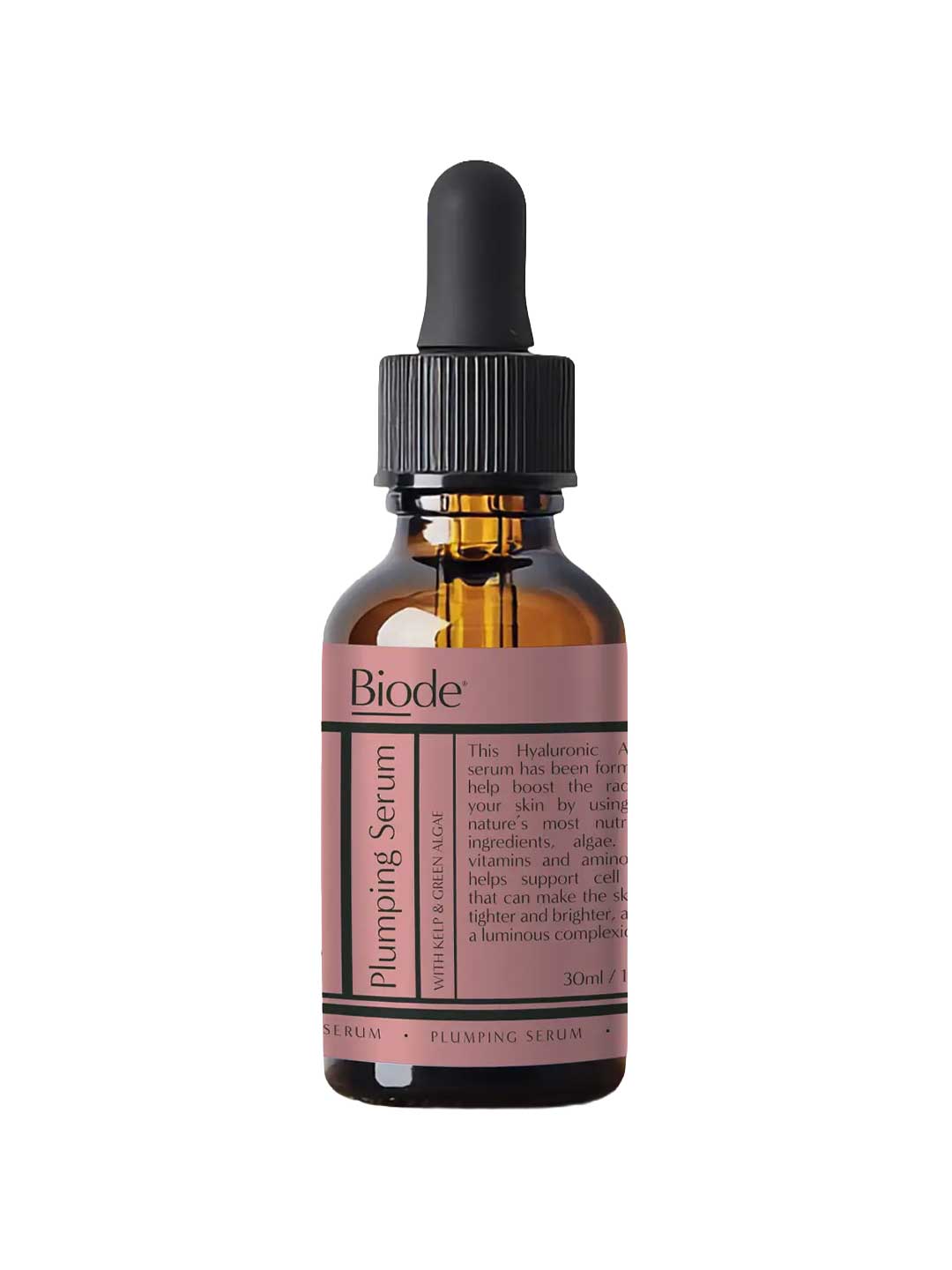 The Biode Plumping Serum with Kelp and Green Algae is a hyaluronic acid serum for dull and dehydrated skin that boosts radiance and supports a lighter, tighter and brighter-looking complexion. Formulated with some of nature's most nutrient-rich ingredients including Kelp and Green Algae, high in vitamins and amino acids to help create a luminous appearance. This plumping serum uses pure Hyaluronic Acid to deeply hydrate and support skin fullness whilst the marine botanicals work to enhance radiance and vitality. Free from silicone and mineral oil. Made in Australia, vegan and packaged in glass.
