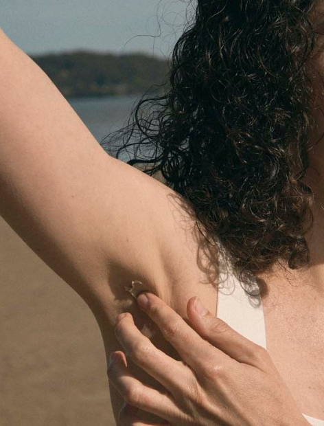Grab a pea sized amount with your finger and gently rub it into your armpits until it warms and dissolves. A little goes a long way. Don’t rub too hard or apply too much, apply directly after shaving.