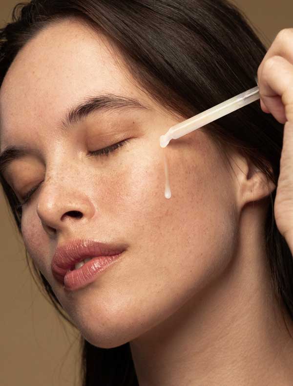 Step 2: Gently massage a few drops of the hyaluronic acid serum into your face, neck and décolletage.
