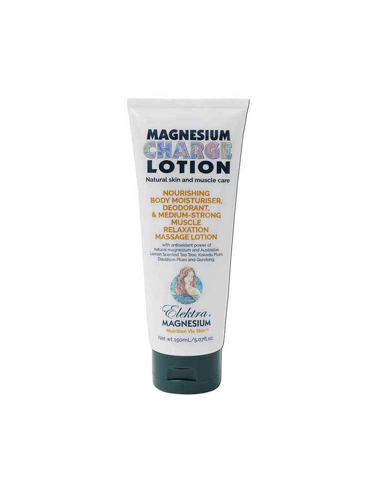 The Elektra Magnesium Charge Lotion is a high-strength formula with a 30% concentration of magnesium chloride salt, delivering approximately 300mg of elemental magnesium per teaspoon. Its silky, light texture is ideal for active people, providing fast action when massaged into muscles to relieve tightness and support performance and recovery. The formula features Hyaluronic Acid for hydration and powerful Australian botanicals like Kakadu Plum, Davidson Plum, and Quandong for antioxidant support. With a fresh aroma of lemon-scented tea tree, it absorbs beautifully, leaving no sticky residue. Made in Australia and vegan.