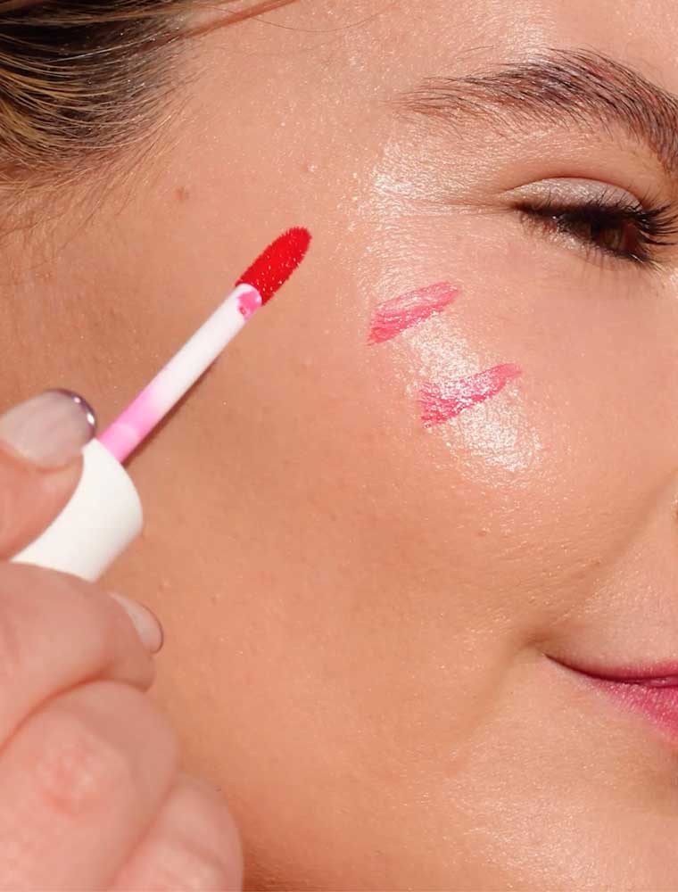 1. Apply to a clean face, well moisturised or over foundation on lips and cheek areas.