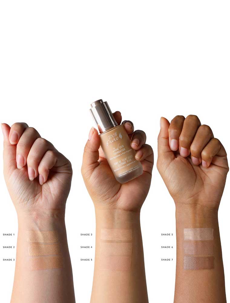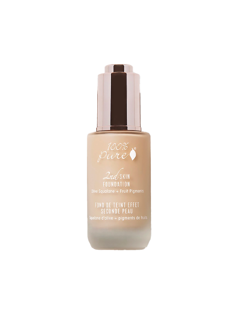 The 100% Pure 2nd Skin Foundation is an innovative serum formulation designed to provide a natural, second-skin effect with ultralight feel and buildable medium coverage. This antioxidant-rich formula features Olive Squalane that helps moisturise and soothe skin whilst Turmeric Extract helps brighten and Vitamin E provides antioxidant benefits. Enhanced with Bamboo Silica that helps control excess oil whilst Calendula helps calm the appearance of breakouts for a smooth, natural-looking complexion. Available in Shade 1 (fair with neutral undertone), Shade 2 (light with warm peach undertone), Shade 3 (light medium with warm undertone), Shade 4 (medium with warm undertone), Shade 5 (tan with neutral undertone), Shade 6 (dark with neutral undertone), and Shade 7 (dark with neutral undertone). Made in the USA, packaged in glass and vegan.