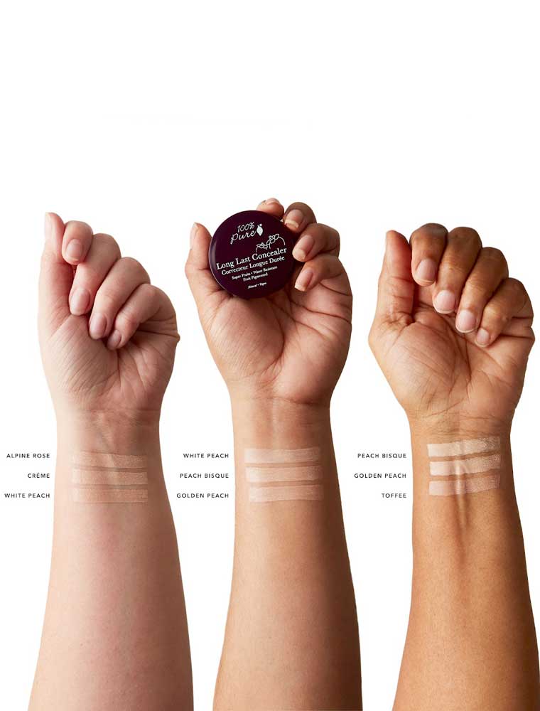 The 100% Pure Long Last Concealer is a long-wearing formulation designed for water, sweat and oil-resistant coverage with flawless all-day wear. This lightweight concealer features a creamy base of Shea Butter and Rosehip Oil that help nourish skin whilst delivering full opaque coverage with a satin, non-caking finish. Enhanced with Lavender, Goldenseal and Chamomile that help soothe skin whilst Green Coffee provides antioxidant benefits for comfortable wear. The very blendable formula is ideal for all areas of the face including dark circles under the eyes, redness and blemishes, providing seamless coverage that lasts all day without caking or fading. Available in versatile shades including Alpine Rose, Créme, Peach Bisque, Golden Peach, and Toffee to match various skin tones. Made in the USA and vegan.
