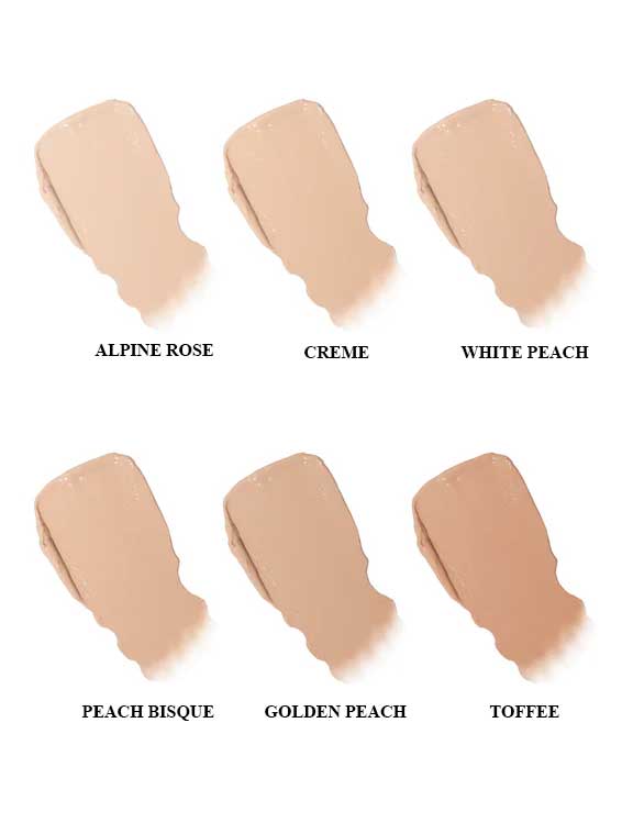 Alpine Rose - Ricinus Communis (Castor) Seed Oil, Helianthus Annuus (Sunflower) Seed Oil, Mica, Prunus Amygdalus Dulcis (Sweet Almond) Oil, Prunus Armeniaca (Apricot) Kernel Oil, Euphorbia Cerifera (Candelilla) Wax, Ananassa (Strawberry) Fruit Extract, Beta Vulgaris (Beet) Root Extract, Punica Granatum (Pomegranate) Fruit Extract, Hylocereus Undatus Fruit (Dragonfruit) Extract, Vaccinium Myrtillus Fruit (Bilberry Fruit) Extract, Euterpe Oleracea (Acai) Fruit, Vaccinium Angustifolium (Blueberry) Fruit Extract, Spirulina Maxima (Blue Spirulina) Extract, Curcuma Longa (Turmeric) Root Extract, Daucus Carota Sativa (Carrot) Root Extract, Camellia Sinensis Leaf (Matcha Green Tea) Extract, Chlorophyllin-Copper Complex (Plant Chlorophyll), Activated Charcoal, Theobroma Cacao (Cocoa) Extract, Butyrospermum Parkii (Shea) Butter, Coffea Arabica (Coffee) Seed Oil, Oryza Sativa (Rice) Powder, Rosa Canina (Rosehip) Fruit Oil, Theobroma Cacao (Cocoa) Seed Butter, Tocopherol (Vitamin E), Ascorbyl Palmitate (Vitamin C), Chamomilla Recutita (Matricaria) Flower Extract, Rosmarinus Officinalis (Rosemary) Leaf Extract, Zinc Oxide (Mineral), Citric Acid (To Balance pH), Lecithin (Sunflower Derived). May Contain: CI 77891, CI 77492, CI 77491, CI 77499.Golden Peach 0 Ricinus Communis (Castor) Seed Oil, Helianthus Annuus (Sunflower) Seed Oil, Mica, Prunus Amygdalus Dulcis (Sweet Almond) Oil, Prunus Armeniaca (Apricot) Kernel Oil, Euphorbia Cerifera (Candelilla) Wax, Fragaria Ananassa (Strawberry) Fruit Extract, Beta Vulgaris (Beet) Root Extract, Punica Granatum (Pomegranate) Fruit Extract, Hylocereus Undatus (Dragonfruit) Extract, Vaccinium Myrtillus (Bilberry) Fruit Extract, Euterpe Oleracea (Acai) Fruit Extract, Vaccinium Angustifolium (Blueberry) Fruit Extract, Spirulina Maxima (Blue Spirulina) Extract, Curcuma Longa (Turmeric) Root Extract, Daucus Carota Sativa (Carrot) Root Extract, Camellia Sinensis Leaf (Matcha Green Tea) Extract, Chlorophyllin-Copper Complex (Plant Chlorophyll), Activated Charcoal, Theobroma Cacao (Cocoa) Extract, Butyrospermum Parkii (Shea) Butter, Coffea Arabica (Coffee) Seed Oil, Oryza Sativa (Rice) Powder, Rosa Canina (Rosehip) Fruit Oil, Theobroma Cacao (Cocoa) Seed Butter, Tocopherol (Vitamin E), Ascorbyl Palmitate (Vitamin C), Chamomilla Recutita (Chamomile) Flower Extract, Rosmarinus Officinalis (Rosemary) Leaf Extract, Zinc Oxide, Citric Acid, Lecithin (Sunflower Derived). May contain: CI 77891, CI 77492, CI 77491, CI 77499