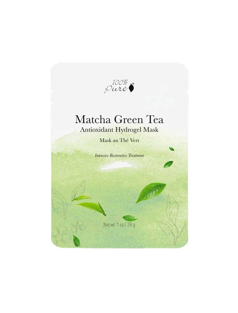 The 100% Pure Matcha Green Tea Antioxidant Hydrogel Mask is a soothing facial treatment designed to calm and hydrate skin while providing antioxidant benefits. Formulated with powerful Hyaluronic Acid and cooling Cucumber Hydrosol plus antioxidant-rich Green Tea, Oolong Tea and Chrysanthemum extracts. The hydrogel material is composed of 95% organic Aloe Vera juice and 5% plant cellulose. Suitable for all skin types.