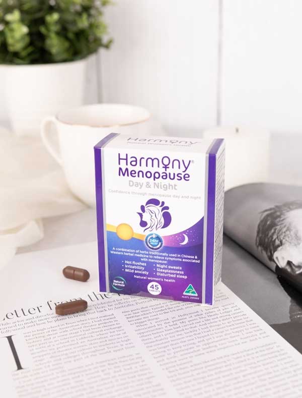 The Harmony Menopause Day & Night is a comprehensive formula combining traditional herbs for round-the-clock menopausal support. This unique blend features Rehmannia and Chinese Yam to help reduce hot flushes and night sweats, while high-dose Ziziphus promotes restful sleep. The synergistic formula includes Chaste Tree for hormone balance, Angelica and Peony for women's health, and Bupleurum for emotional wellbeing. Enhanced with Vitamin D3, Magnesium, and Calcium, this black cohosh-free blend provides complete support for both daytime comfort and nighttime rest. Made in Australia. TGA Listed (AUST L ). ALWAYS READ THE LABEL AND FOLLOW THE DIRECTIONS FOR USE. If symptoms persist, talk to your health professional.