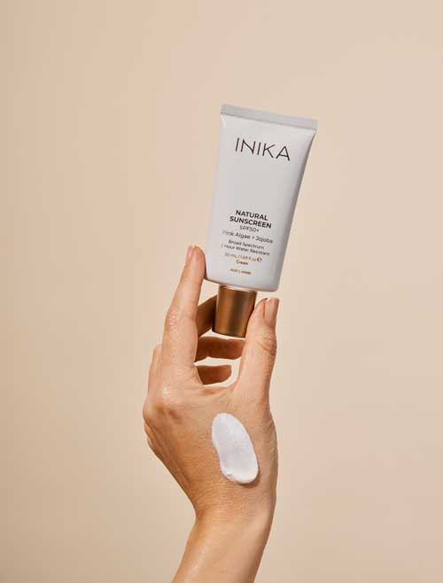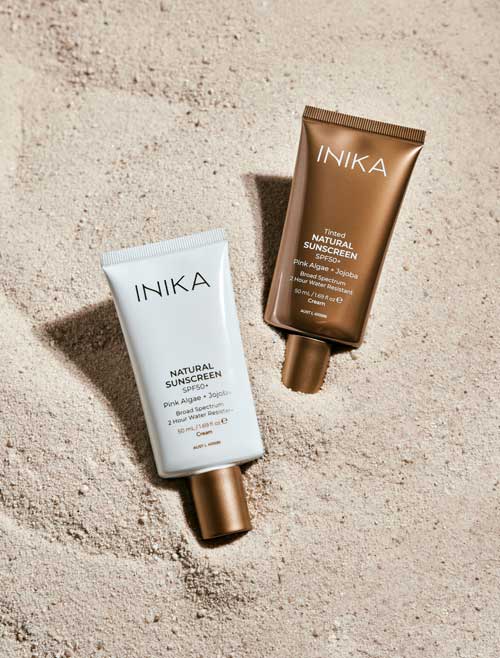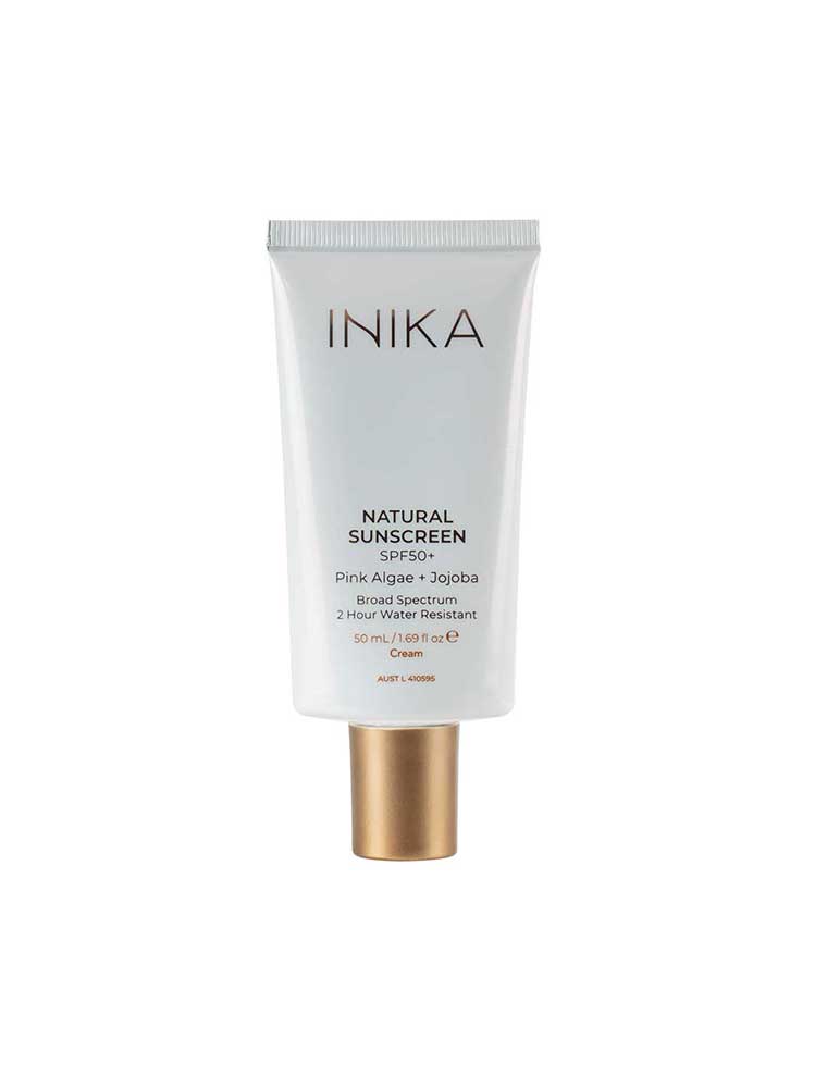 The INIKA Natural Sunscreen SPF50+ is a physical sunscreen and daily face moisturiser, providing broad-spectrum UVA and UVB protection for all skin types. This mineral Zinc Oxide formula combines sun protection with skincare benefits without leaving any white cast. Great under makeup and ideal for everyday skincare routines, it works beautifully under foundation and is fragrance-free and suitable for sensitive skin. Made in Australia and vegan. TGA Listed (AUST L 410595). ALWAYS READ THE LABEL. FOLLOW THE DIRECTIONS FOR USE. Sunscreen is only one part of sun protection; wear protective clothing and seek shade. Avoid prolonged sun exposure and reapply frequently.
