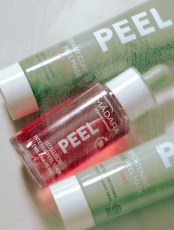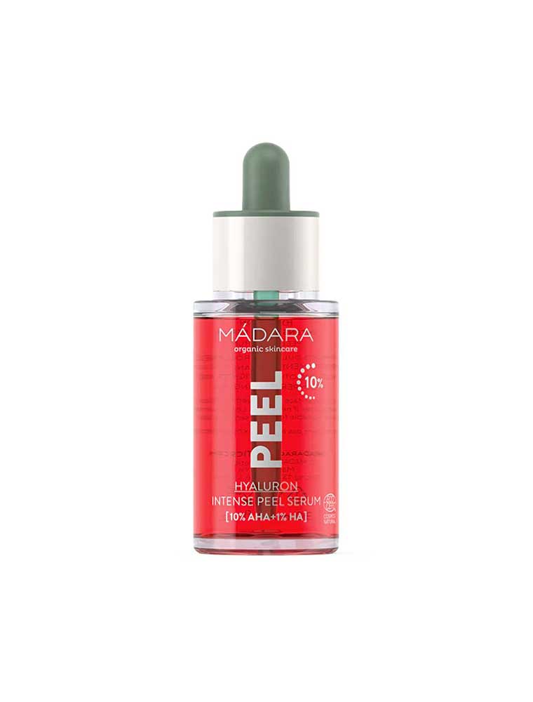 The Madara Peel Hyaluron Intense Peel Serum combines the powerful benefits of AHA with moisturising Hyaluronic Acid in a leave-on formula that works while you sleep. This innovative overnight treatment unveils visibly brighter, smoother and more even skin by morning, targeting dullness, roughness, hyperpigmentation and fine lines for smoother, brighter, more uniform and plumper-looking skin. The gentle exfoliating AHA ingredients support skin renewal whilst intensive Hyaluronic Acid provides deep hydration to maintain skin comfort throughout the overnight treatment. Dermatologically tested but not suitable for fragile or hypersensitive skin. Made in Latvia, certified natural and vegan.