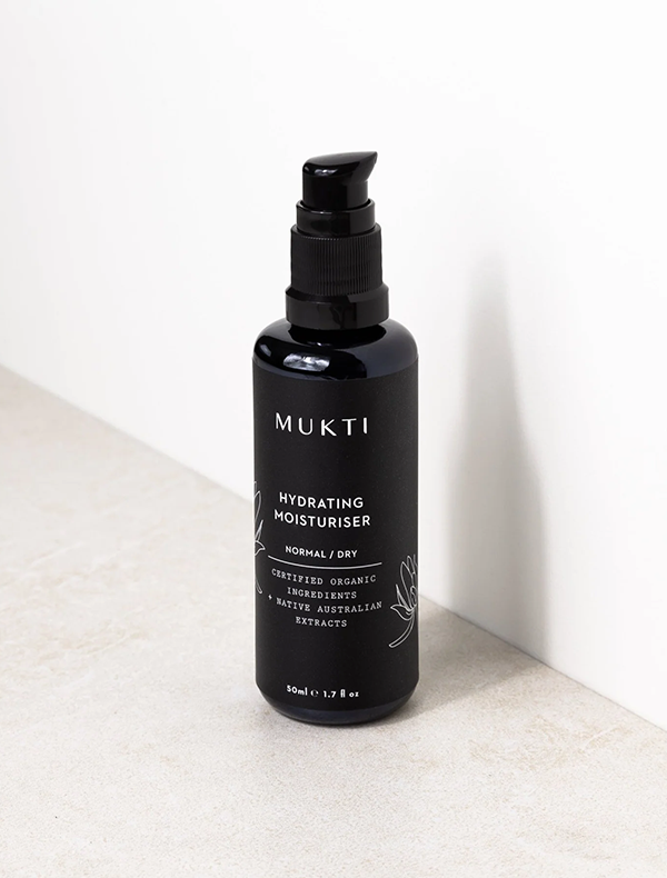 The Mukti Hydrating Moisturiser is a medium-weight day cream featuring powerful Australian botanicals and nourishing actives. This luxurious formula combines Vitamin C-rich Kakadu Plum, antioxidant Banksia Flower, and regenerative Flame Tree, enhanced with CoQ10, Shea Butter and precious oils. The velvety cream carries a sweet floral aroma and creates a dewy, plumped finish while helping to support skin elasticity. Ideal for normal to dry skin types. Made in Australia, certified organic, vegan and packaged in glass.