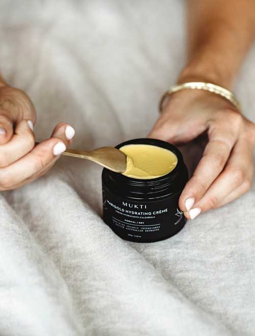 The Mukti Marigold Hydrating Face Crème is a golden-hued, rich, buttery cream providing intensive moisturisation for dry, mature, and very dry skin. This reparative treatment is suitable for those with sensitive and chapped skin, formulated with bioactive Australian native extracts including Kakadu Plum and CoQ10, Vitamin E and Chamomile with Marigold. Made in Australia, vegan and packaged in glass.