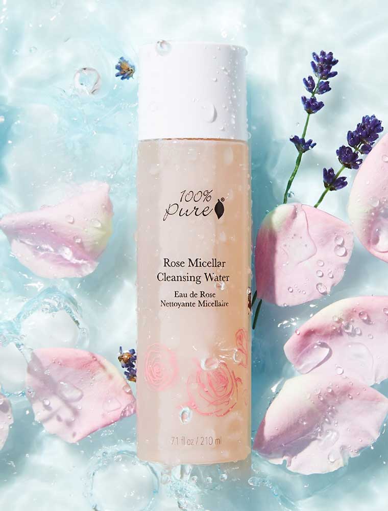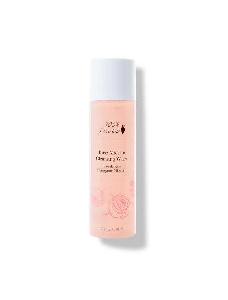 The 100% Pure Rose Micellar Cleansing Water is a natural alternative to traditional micellar waters, made with Cornflower and Rose Waters plus Vegetable Glycerin and Aloe to remove all traces of makeup (including stubborn mascara and lipstick), dirt and excess oils. Ideal for all skin types including dry, sensitive and blemish-prone. This is also the perfect first step in your double-cleansing routine by following with a milk, gel or foaming cleanser. Made in the USA and vegan.