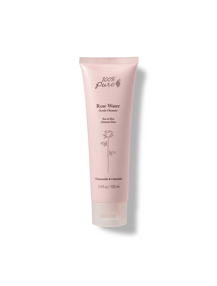 The 100% Pure Rose Water Gentle Cleanser is soft, hydrating face cleanser formulated with soothing Rose Hydrosol, White Tea, Calendula and Chamomile to effectively remove all traces of makeup and impurities while maintaining skin's natural hydration. Ideal for dry, mature or sensitive skin and suitable for complexions prone to redness and mild irritation. Made in the USA and vegan.