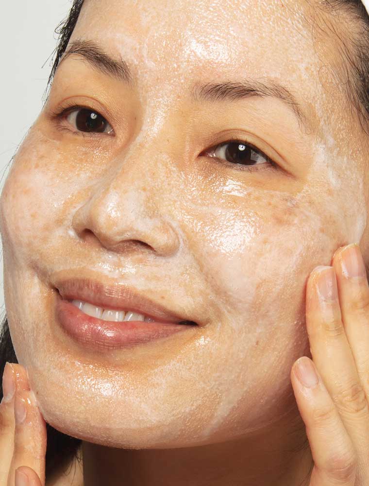 Squeeze onto a wet Konjac sponge, wet facial cleansing brush, or directly onto wet face and neck. Gently and thoroughly massage in circular motions. Rinse with warm water.