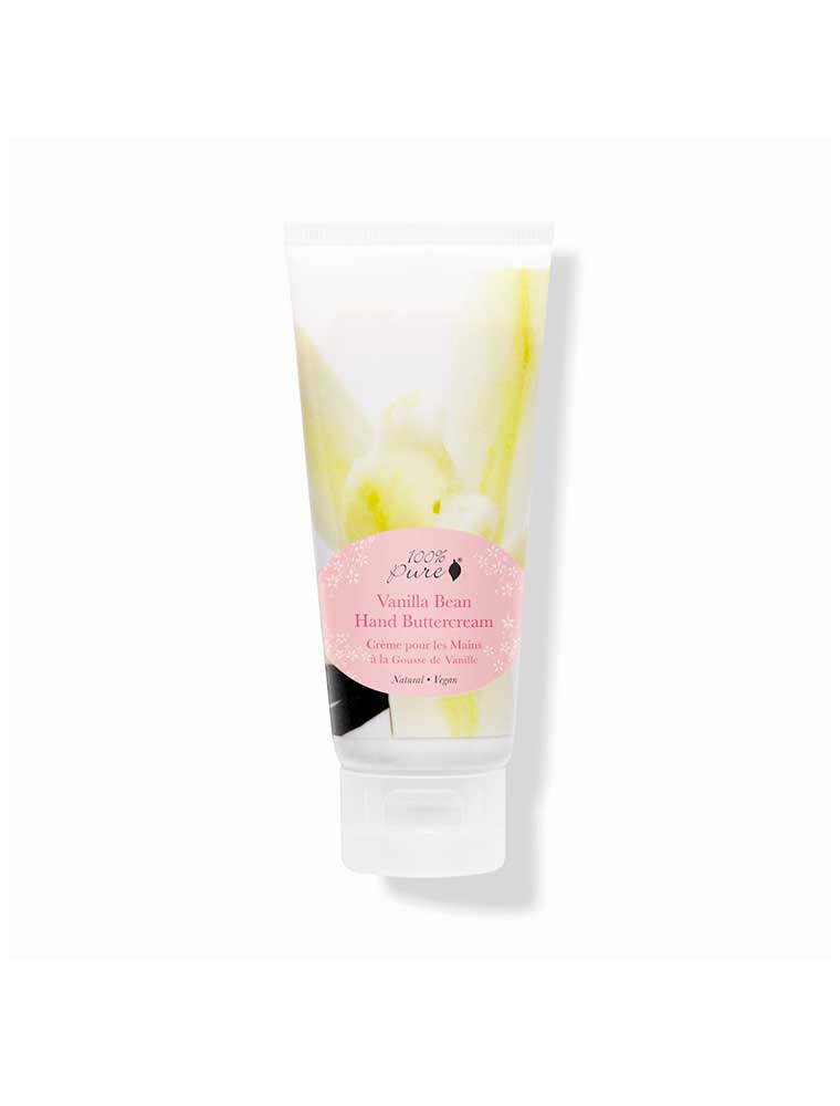 This 100% Pure Vanilla Bean Hand Buttercream is a luxurious non-greasy hand cream with a lingering aroma of warm vanilla beans. Made with a rich blend of Cocoa Butter, Avocado Butter and nourishing super fruit oils and extracts for soft, smooth hands. Made in the USA and vegan.