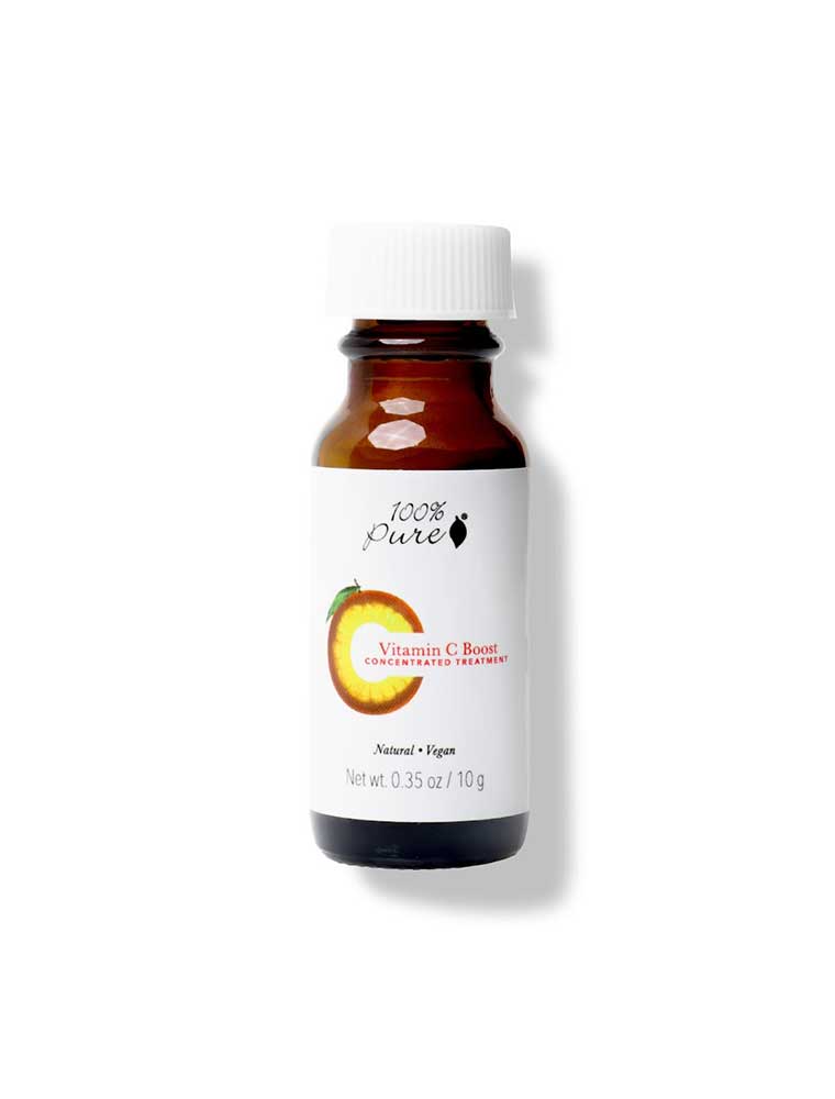 The 100% Pure Vitamin C Boost is perfect for all skin types including those with sensitive complexions. This unique water-activated powder treatment features a dose of 96% stable Vitamin C designed to help enhance luminosity while lessening the appearance of dark spots. Enhanced with Hyaluronic Acid to deeply hydrate and replenish thirsty skin for a rejuvenated glow. Once water is added, the powder transforms into an activated hydrating face serum that is pH balanced and gentle enough for daily use. Use nightly after cleansing and toning by mixing a pea-sized amount with a few drops of warm water until reaching a serum-like consistency, then gently pat onto skin. Made in the USA, vegan and packaged in glass.