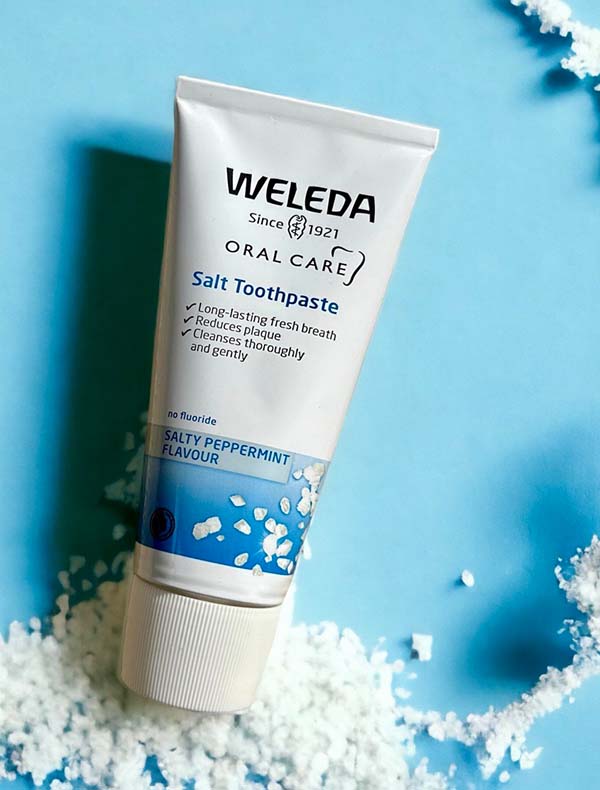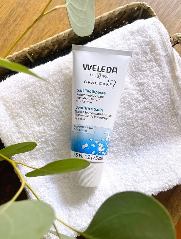 The Weleda Salt Toothpaste is a unique natural toothpaste with sea salt and gentle plant cleansers that work with your body to clean the teeth naturally. This fluoride-free formula uses sea salt to stimulate salivation, increasing the cleaning power of the natural ingredients. It also contains extracts of Ratanhia root and Myrrh to support gum health and Chestnut bark to gently clean and reduce plaque. The zesty, salty taste is freshened with the essential oil of Peppermint for a tingly-fresh experience. Made in Germany and certified natural.