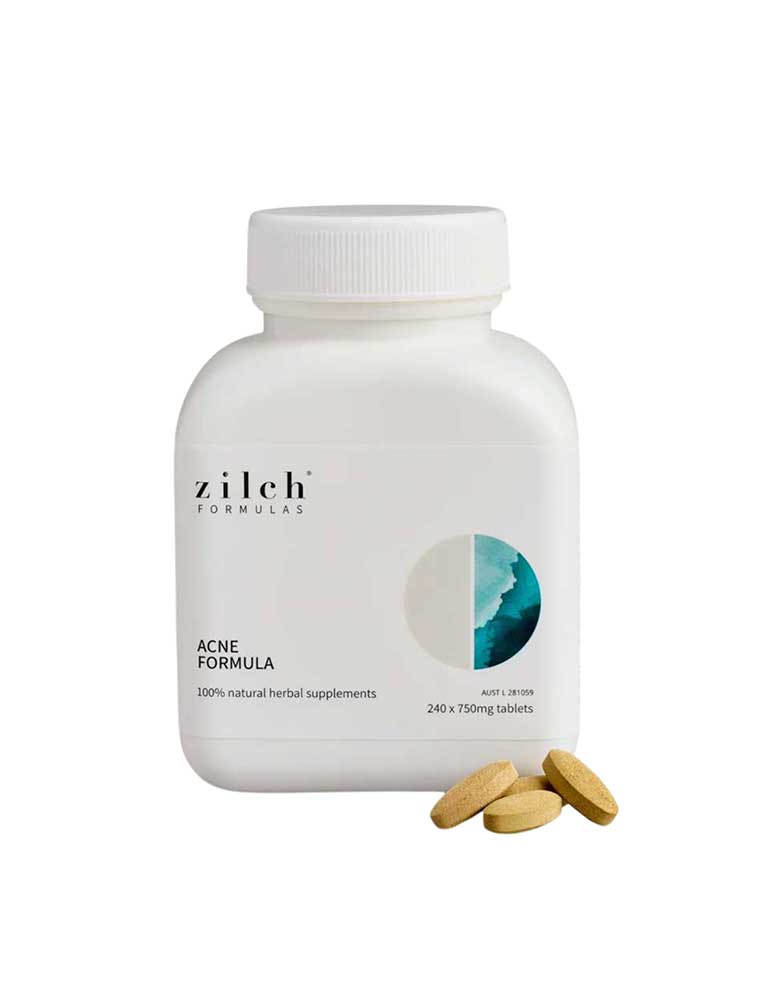 The Zilch Acne Formula contains herbs traditionally used in Chinese medicine to help reduce the occurrence of acne symptoms and pimples. Made up of 17 herbal ingredients and potato starch as a binder, with no added preservatives, chemicals or fillers. This patented formula may assist with deep under-the-skin painful acne, whiteheads, hormonal acne, adult acne, stubborn acne, body acne, and closed comedones. Made in Australia and vegan. TGA Listed (AUST L 281059). ALWAYS READ THE LABEL AND USE ONLY AS DIRECTED. If symptoms persist, talk to your health professional.