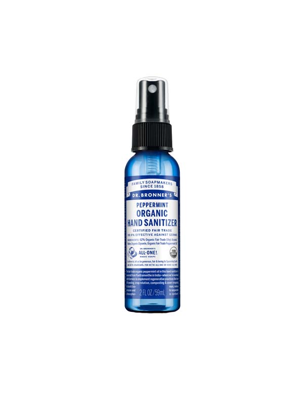 Dr. Bronner's Organic Hand Sanitiser in Peppermint is a simple yet effective formulation designed to sanitise hands on the go. Created with Organic Fair Trade Ethyl Alcohol (62%) for sanitising power, combined with fair trade organic Peppermint Oil for a stimulating scent and organic Glycerin for skin comfort. This versatile sanitiser features Peppermint Oil sourced from Pavitramenthe in India, supporting climate-friendly regenerative organic practices. Ideal for clean, conscious sanitising with an invigorating aroma that leaves hands feeling fresh and protected. Made in the USA and vegan.