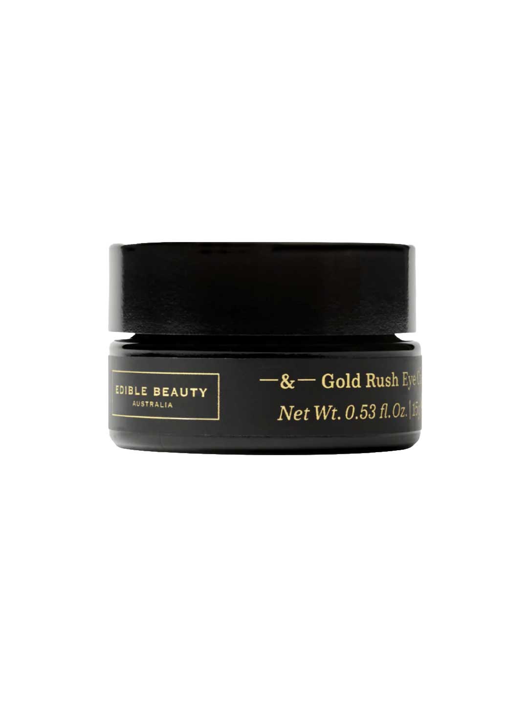 The Edible Beauty Gold Rush Eye Cream is a corrective eye cream made with 24K gold leaf, formulated to visibly soften fine lines and brighten dark circles around the delicate eye area. Formulated with bakuchiol, a gentle plant-based alternative to retinol, along with hyaluronic acid and clinically studied peptides, it helps smooth the appearance of fine lines, improve skin texture, and support a firmer, more even-looking eye area. 24K gold leaf, coffee extract and antioxidant-rich blueberry oil work together to reduce the appearance of dark circles and puffiness. Made in Australia, vegan and packaged in glass.