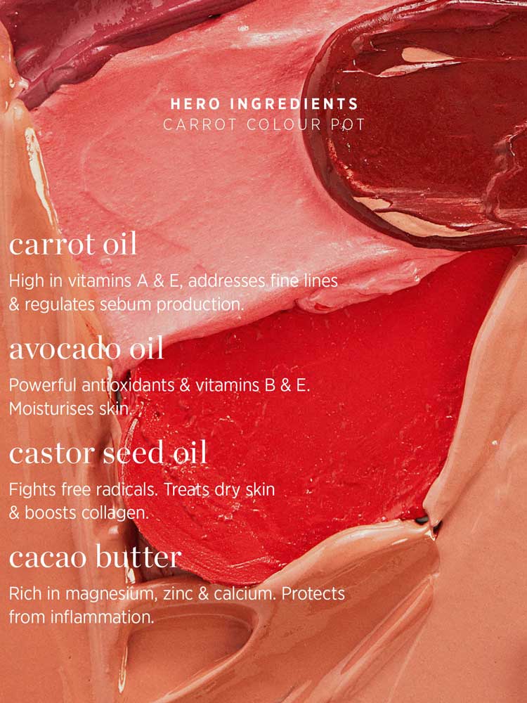 A natural multi-use cream blush for cheeks and lips with Carrot Oil for buildable, blendable colour and a dewy finish, available in 6 shades.