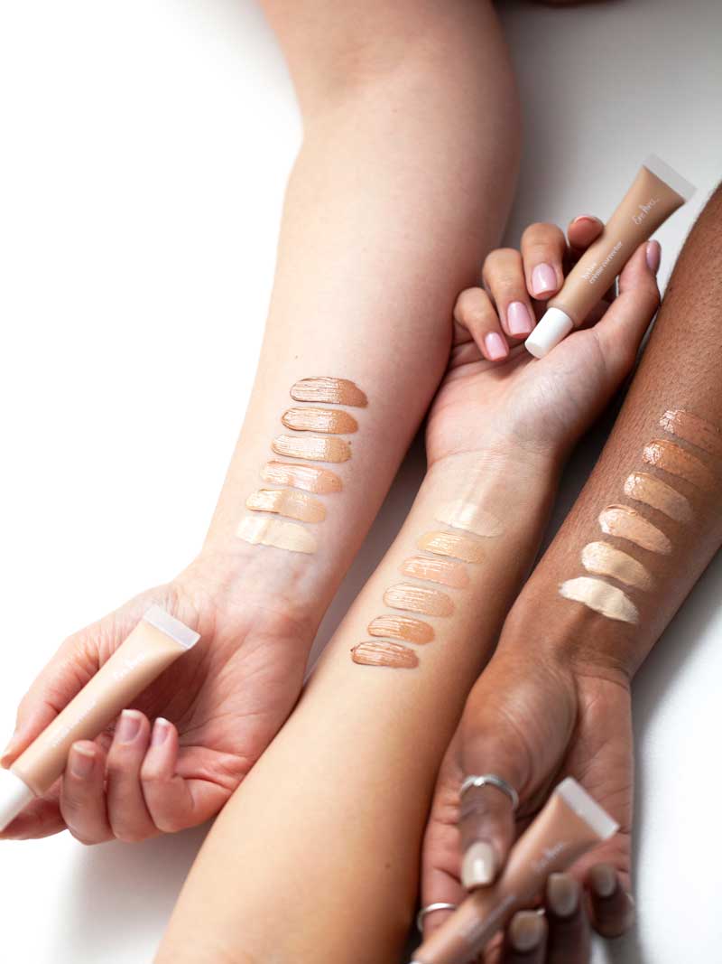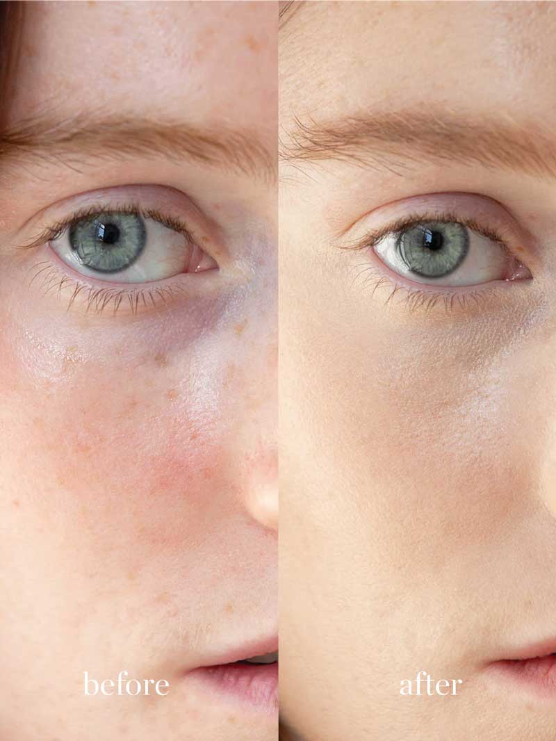 To brighten the eye area, deposit a small amount of product in the inner and outer corners of the eye and spread by patting around the applied area. With fingertips or a precision brush, deposit and blend to even out skin tone and colour correct other areas of the face.