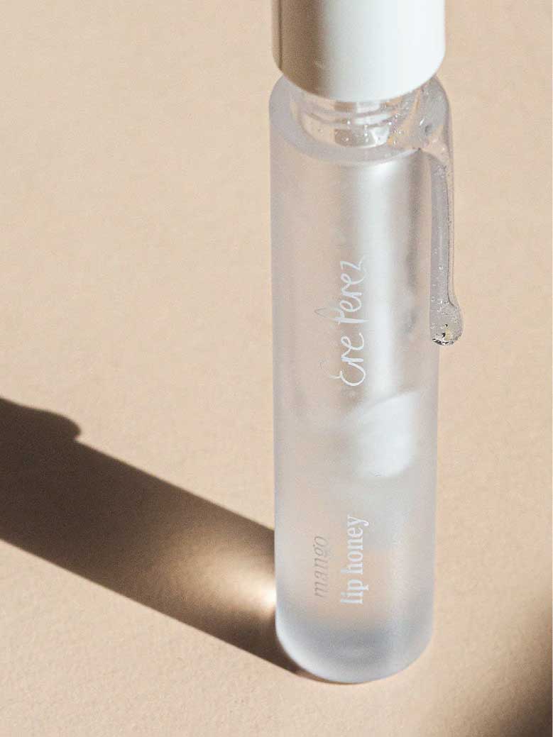 The Ere Perez Mango Lip Honey in Glaze is a clear, high-shine gloss that delivers intense hydration while enhancing the natural beauty of your lips. Formulated with nourishing Mango Seed Butter, rich in vitamins and minerals, and Hyaluronic Acid for long-lasting moisture, it helps keep lips soft and plump. Infused with Jojoba Seed Oil to smooth and condition, this honey-textured gloss glides on effortlessly for a juicy, glass-like finish. Perfect on its own or layered over your favourite lipstick for added dimension and shine. Vegan.