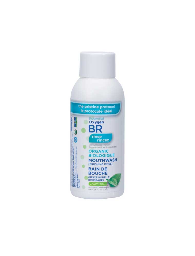 The Essential Oxygen BR Organic Mouthwash + Brushing Rinse is a super-powered, fluoride-free oral rinse that refreshingly cleans your whole mouth with the natural cleaning power of Food Grade Hydrogen Peroxide. This innovative formula whitens teeth, freshens breath and nourishes gums whilst delivering comprehensive oral care benefits. Enhanced with Essential Oxygen's proprietary blend of essential oils, each ingredient is mindfully sourced and selected for its beneficial properties. This refreshing Peppermint formula provides a clean, invigorating experience that leaves your mouth feeling fresh and revitalised. Made in the USA, certified organic and vegan.