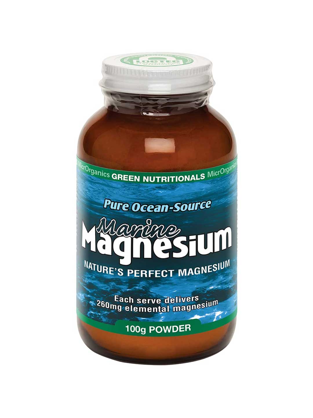 The Green Nutritionals Pure Ocean-Source Marine Magnesium is a unique natural supplement derived from the mineral-rich waters off the Irish Atlantic coast. This exceptional magnesium hydroxide formula has been shown through in-vitro testing to be 78% soluble in a typical digestive system, offering superior bioavailability compared to common magnesium oxide supplements. Each 3g serve delivers 260mg of elemental magnesium complemented by a multi-mineral matrix of 74 plant-source minerals and trace elements that work synergistically to enhance absorption and utilisation in the body. This pure, natural formula contains nothing artificial or synthetic and can be mixed with water, juice or added to food. Lab-tested for purity. Made in Australia and vegan.