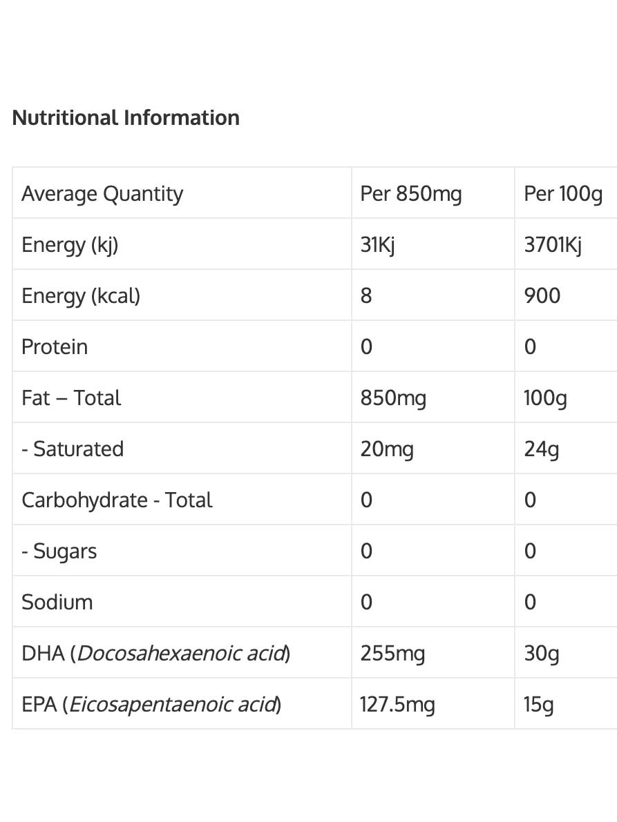 Each vegan capsule contains 850mg ofLife'sOMEGA3™ marine microalgae oil delivering 255mg DHA and 127mg EPA.