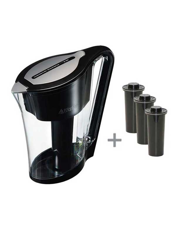 The MyWaterJug 1.5L Water Filter has been created with over 40 years of research into water filtration by world leading scientists. Designed with an unmatched filtration system that quickly converts regular tap water into remineralised water with a pH of 7.4 -8.4. It includes a unique 7-stage filter featuring activated coconut shell carbon bonded with silver for up to 99% reduction of fluoride, chlorine, chemicals, bacteria and heavy metals including lead, copper, mercury & aluminium. Included is 1 simple filter that lasts 300 litres (approx 90 days of use) with refill packs sold in sets of 3. This is a compact, lightweight portable jug that that is free from BPA, BPB and BPS, ideal for the home, work and travel.
