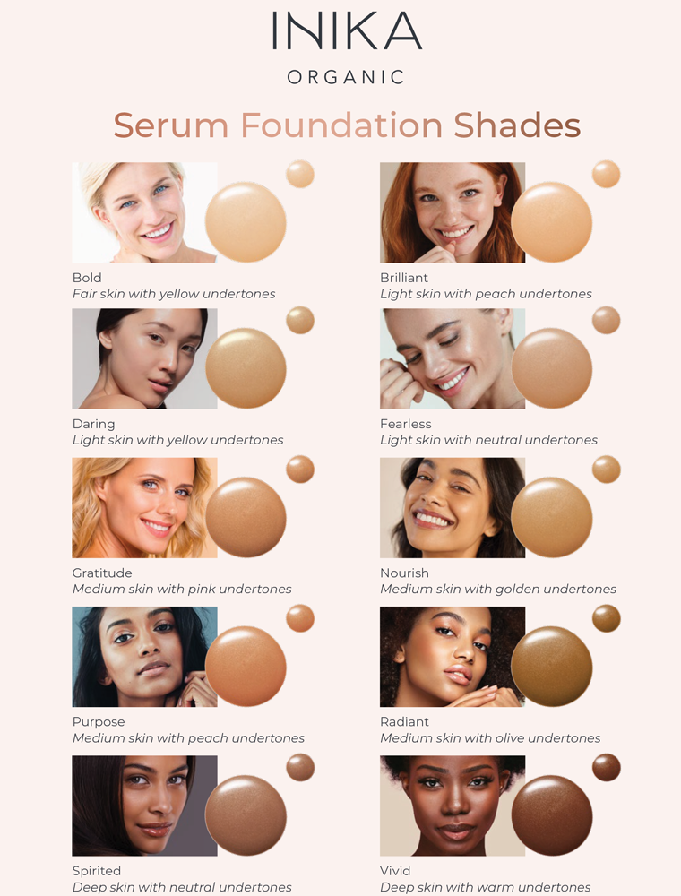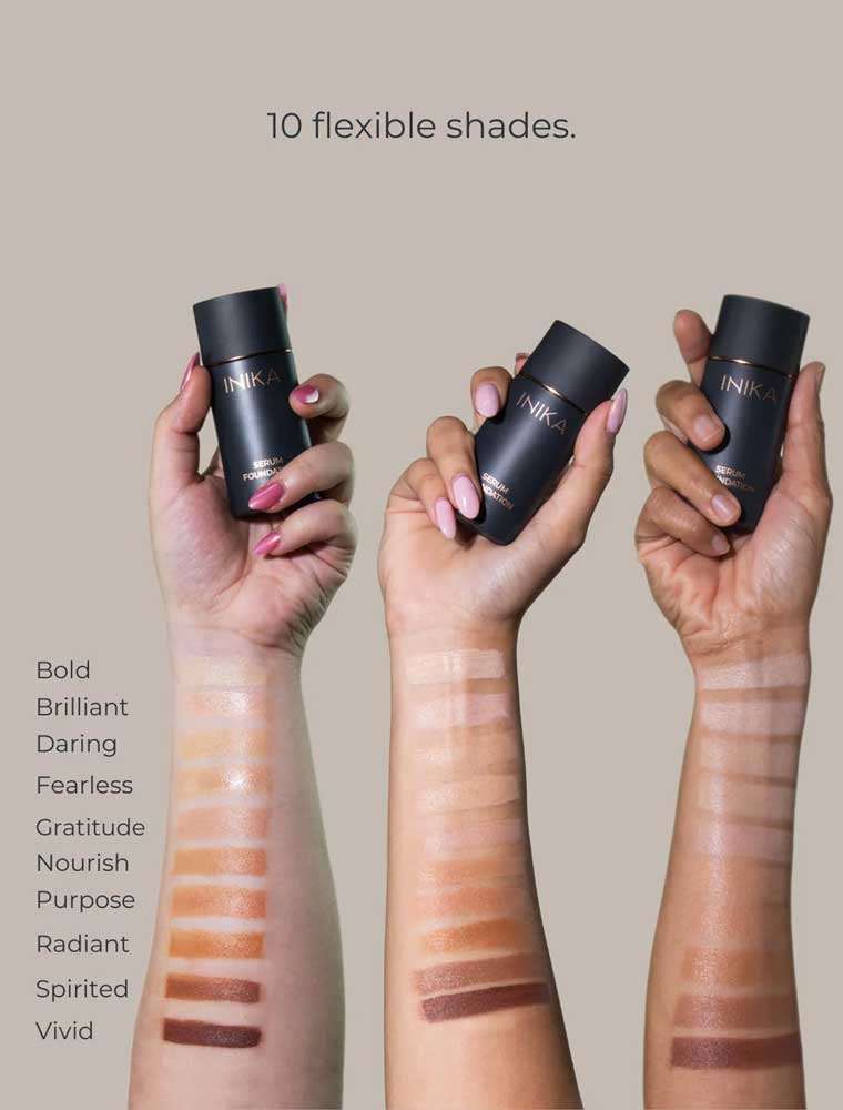 Apply lightly with fingertips or use the INIKA Foundation Brush to buff into the skin, building coverage gradually where desired.