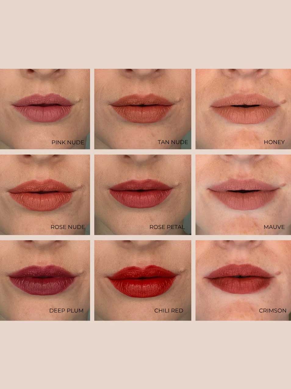 The Inika Organic Lip Crayons are a versatile lipstick and lipliner in one, delivering long-lasting colour with a smooth satin finish. This richly pigmented formula combines the softness of a lipstick with the precision of a lipliner, providing full coverage and comfortable wear. Enriched with certified organic Coconut Oil and Vitamin E to soften and condition lips. Available in nine flattering shades: Tan Nude (medium brown nude with warm undertones), Rose Nude (medium pink nude with warm undertones), Pink Nude (light pink nude with cool undertones), Rose Petal (deep tan rose with cool undertones), Deep Plum (deep plum with cool undertones), Chilli Red (vibrant orange red with warm undertones), Honey (brown nude with cool undertones), Mauve (muted pink with cool undertones), and Crimson (deep red with warm undertones). Made in Italy, certified organic and vegan.