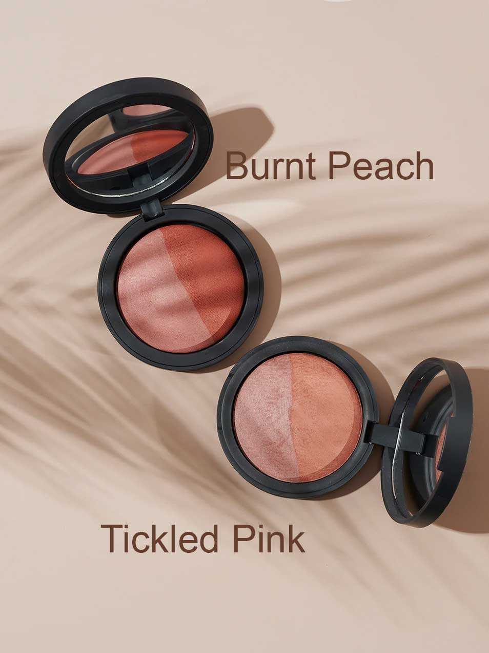 1. Create a flawless base with your favourite INIKA Foundation. Apply Baked Blush Duo on top as per the following steps.