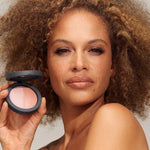 2. Using your INIKA Organic Cheek Topper Brush, sweep some powder from the pan and tap off excess.