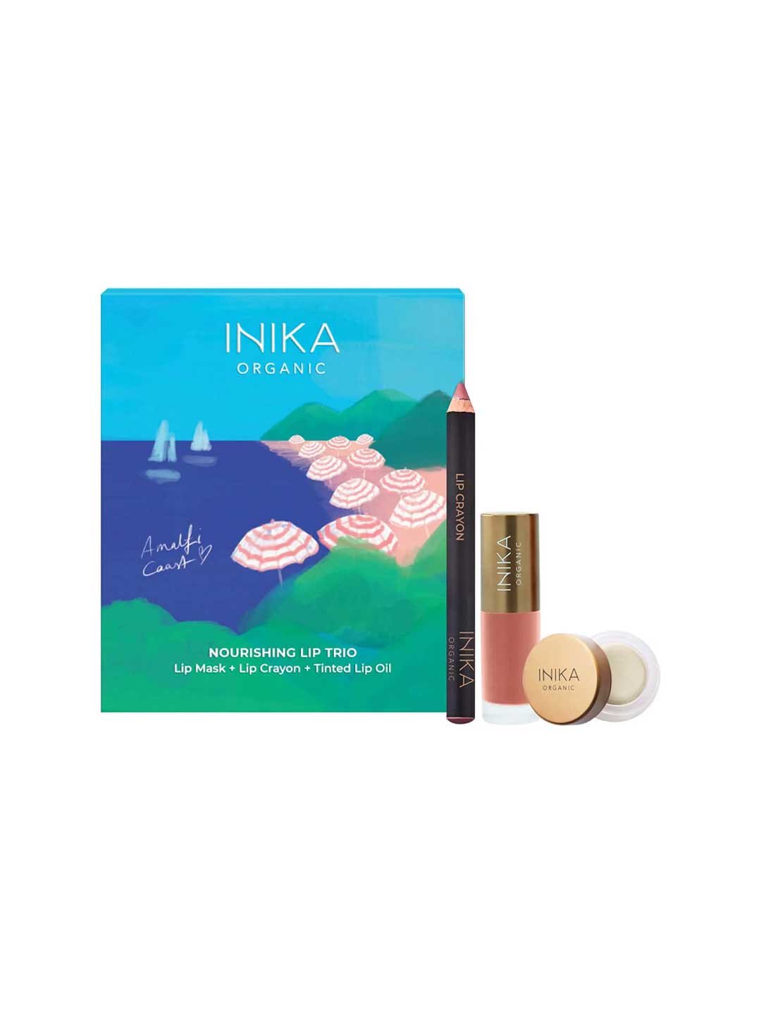 The INIKA Organic Nourishing Lip Trio is inspired by the romance of the Amalfi Coast, offering three full-size essentials for soft, hydrated and naturally enhanced lips. Formulated with skin-loving botanicals, this special edition collection smooths, nourishes and adds effortless colour.