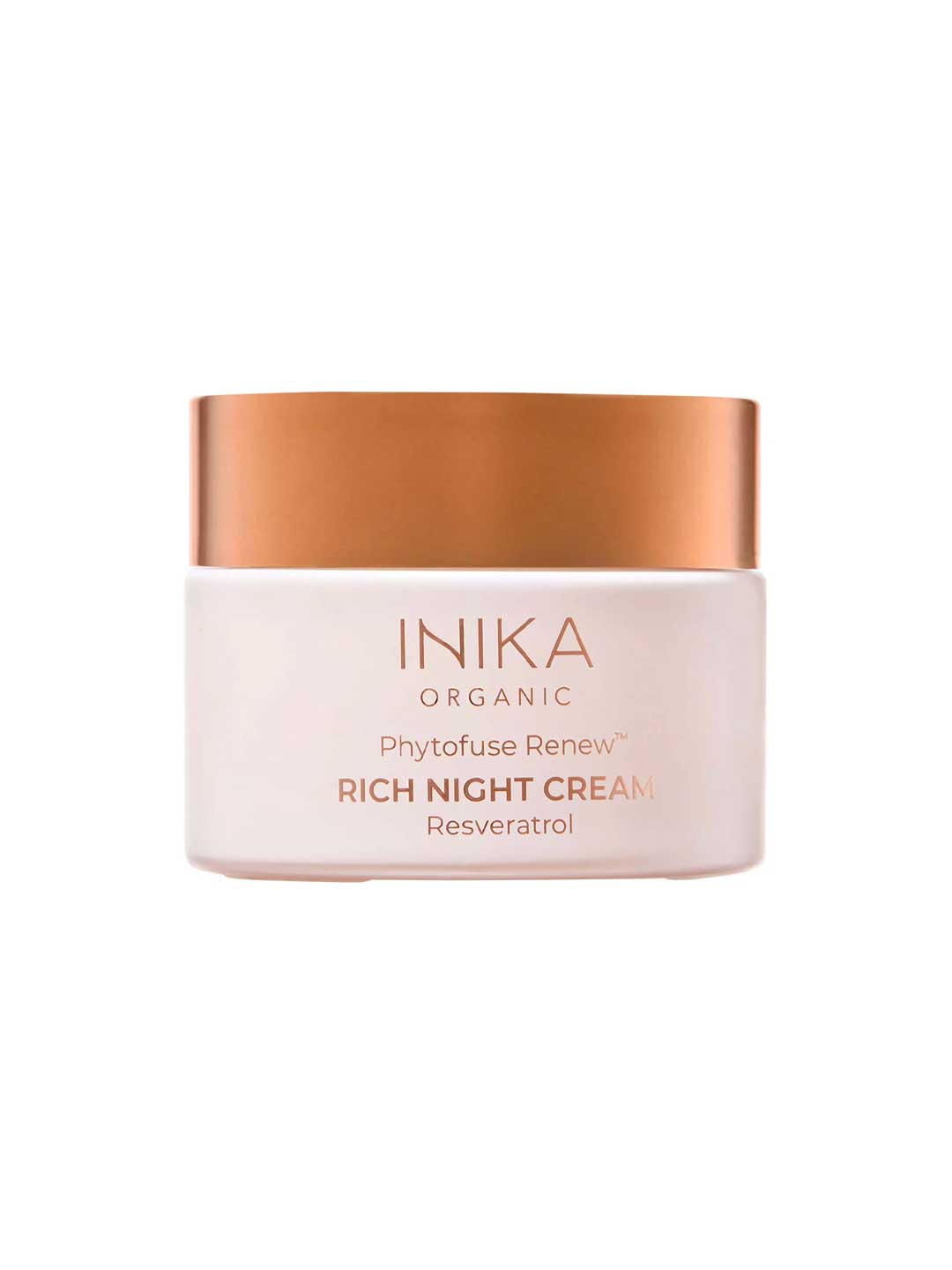 The INIKA Organic Phytofuse Renew Rich Night Cream is an anti aging night cream and ultra-luxurious moisturiser formulated for very dry and mature skin. This moisture restoring night cream combines clinically proven natural botanicals with organic plant oils and butters to deeply moisturise skin while you sleep. The formula features nourishing Argan Oil and Rosehip Oil alongside Polyphenol-rich Resveratrol Grape Juice extract to help neutralise free radicals, plus Phytofuse Renew™ Rose of Jericho technology to help improve skin density and moisture retention overnight. This hydrating night cream works through the night to deliver intensive nourishment and hydration for visibly plumper, more resilient skin by morning. Ideal for very dry and mature skin in need of rich overnight moisture. For normal to dry skin types, try the INIKA Organic Phytofuse Renew Night Cream. Made in Australia, certified organic, vegan and packaged in glass.