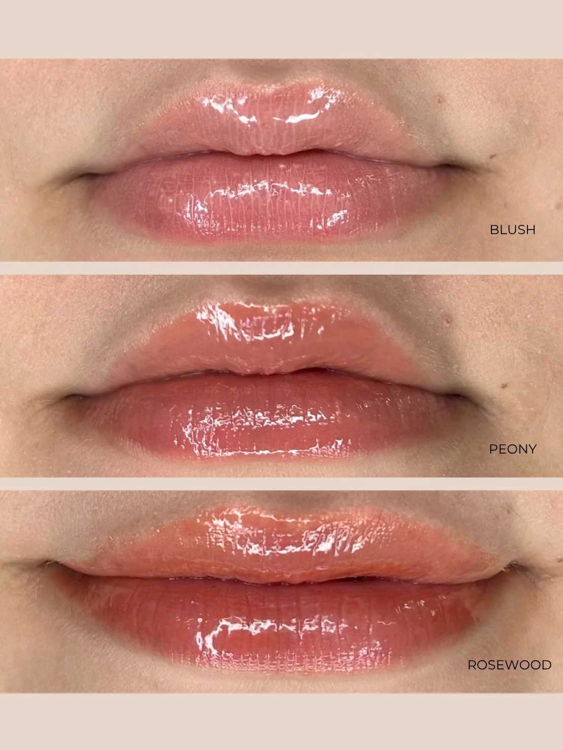- Available in three sheer shades: Blush, Peony and Rosewood