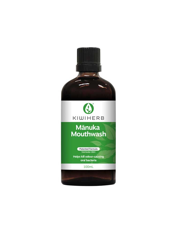 The Kiwiherb Mānuka Mouthwash is a 100% natural herbal mouthwash made from New Zealand native Mānuka and Tānekaha, which help kill the odour-causing bacteria that cause bad breath. In vitro tests commissioned by Kiwiherb on preparations containing a combination of Mānuka and Tānekaha have found activity against the common oral bacteria Streptococcus mutans, Streptococcus mitis, and Actinomyces naeslundii. Naturally flavoured with Aniseed, Liquorice and Peppermint oil for fresh breath and that clean feeling, this patented formula leaves the mouth feeling fresh and clean. Made in New Zealand and packaged in glass.