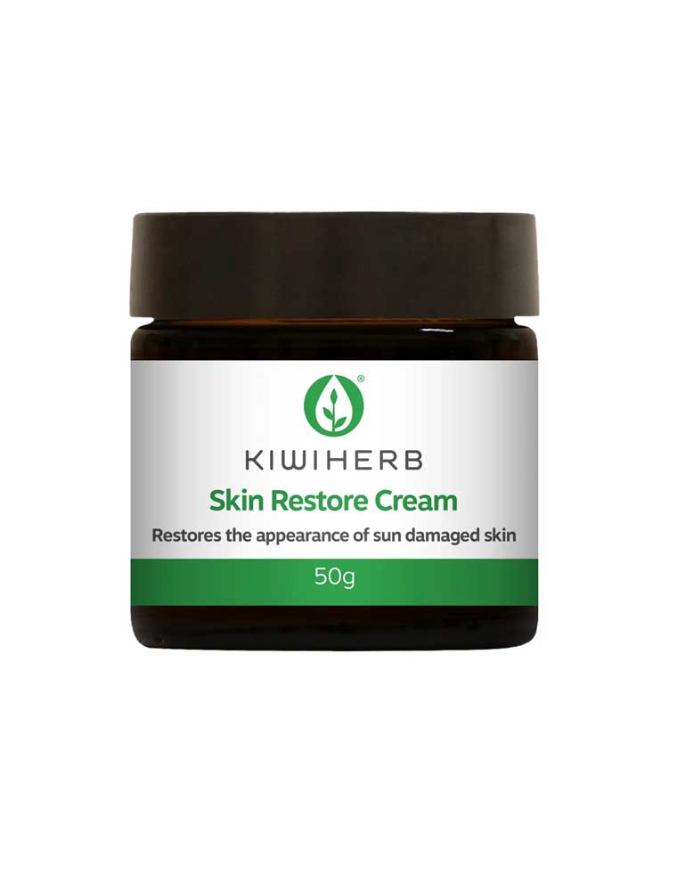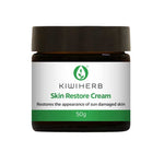 The Kiwiherb Skin Restore Cream is an antioxidant-rich cream featuring organic Green Tea, New Zealand native Hoheria leaf, Grape seed and Kiwifruit skin extracts. This multifunctional cream targets the appearance of wrinkles, skin redness, pigmentation and sun damaged skin while promoting increased skin elasticity and moisture retention. Made in New Zealand and packaged in glass.