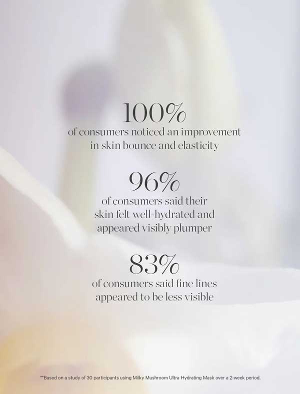 The KORA Organics Milky Mushroom Ultra-Hydrating Mask is a moisture-locking mask that deeply hydrates, plumps, and renews to boost skin's radiance. Silver Ear Mushroom and Hyaluronic Acid work together to provide deep, lasting hydration, while Coconut Milk and Aloe veil the skin in moisture and nutrients for a healthier, supple glow. In a 2-week study, 96% of participants said their skin felt well-hydrated and appeared visibly plumper, and 83% said fine lines appeared less visible. Use it as a 15-minute moisture fix or as an overnight soak for next-level restoration. A blend of Rose, Geranium, and Basil soothes and calms the senses. Made in the USA, certified organic and vegan.