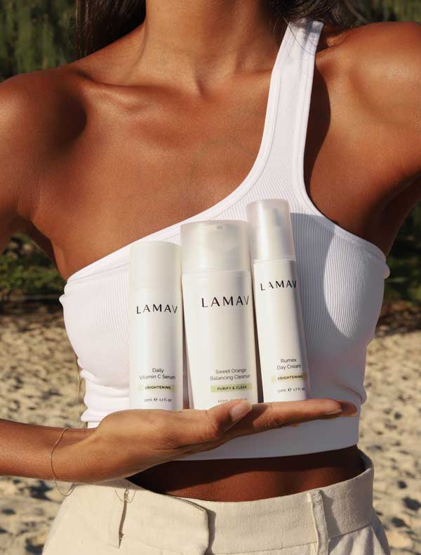 For serious brightening results, use morning and night after cleansing and toning. Press a small amount onto face, neck and décolletage and allow to absorb. Follow with LAMAV Moisturiser. May be applied after LAMAV Booster.