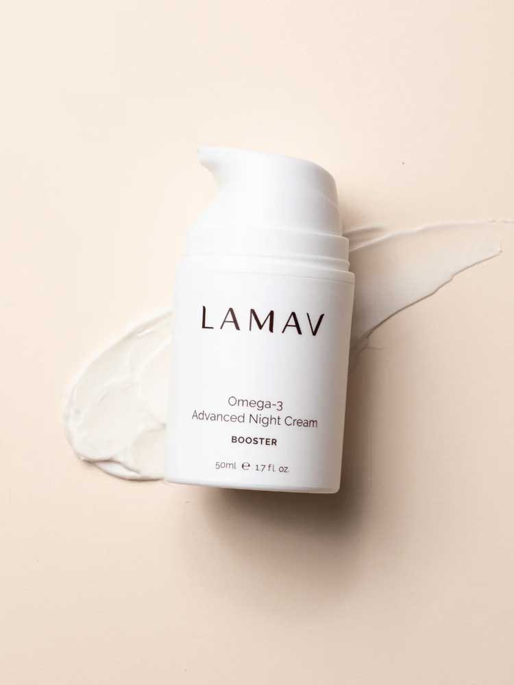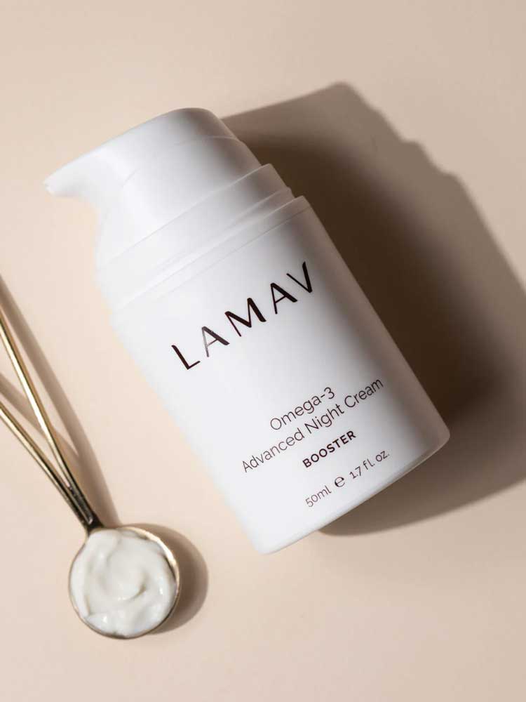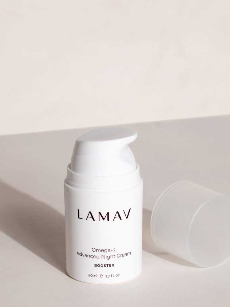 The LAMAV Omega-3 Advanced Night Cream is a rich, nutrient-dense moisturiser designed to recharge and hydrate the skin while you sleep. This certified organic formula combines Chia and Raspberry Seed Oils with Natural Hyaluronic Acid to help strengthen the skin’s moisture barrier and deliver long-lasting hydration.